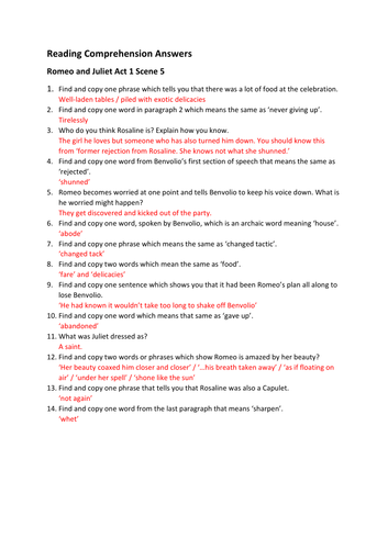 As we read and work in class you will take notes in this packet. Who tries to stop it. Romeo and Juliet Examination Questions and Answers.